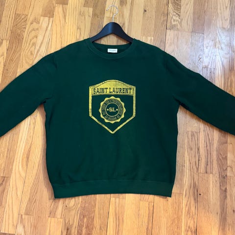 Saint Laurent collegepaita miehille, koko XL. Väriltään beige ja materiaaliltaan puuvillaa. Edessä suuri YSL-logo. Pyöreä pääntie ja resorit helmassa sekä hihansuissa. Sopii arkikäyttöön ja kerrospukeutumiseen.