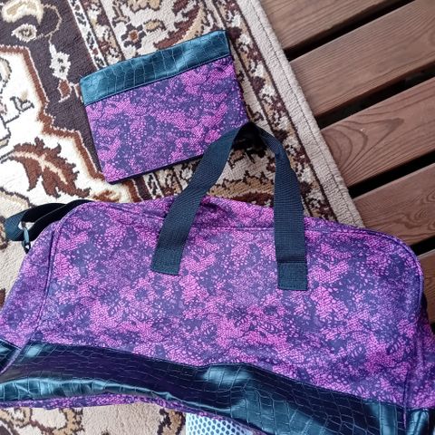 Iso matka-vkonloppu kassi. Kuin uusi, tosi vähän käytetty. Sininen ruskeilla "nahka" vahvikkeilla.