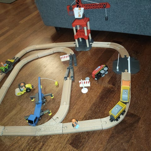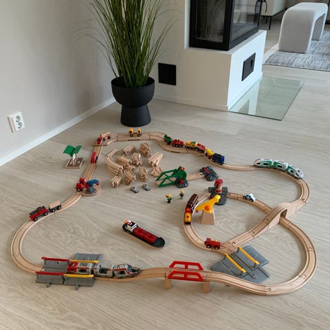 Myydään meillä vähille leikeille jäänyt Biltemasta ostettu puinen junarata.