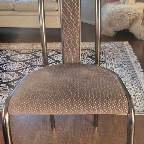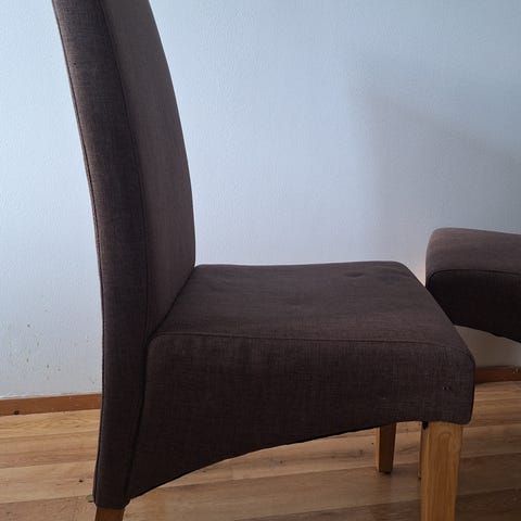 Neljä kappaletta harmaita kivoja ruokaryhmän tuoleja. Päällinen lähtee irti ja ovat helppoja puhdistaa. Ei moitteita. Myynnissä myös pöytä. saa tarjota. Viherlaakso.