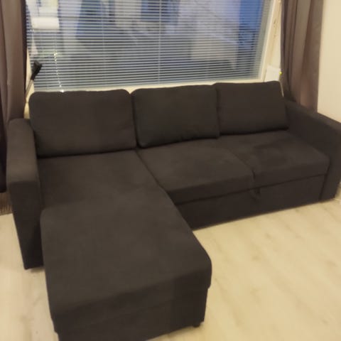 Myydään Veken Verona kahden istuttava harmaa vuodesohva. Sopii näppärästi pieneenkin asuntoon koonsa puolesta, itselläni ollut käytössä pienessä yksiössä. Myydään muuton alta pois. Siistissä kunnossa ja hyvin pidetty, taloudessa ei lemmikkejä. Sohvassa hyvin säilytystilaa esimerkiksi lakanoille. Pituudeltaan 200cm, kun vuode levitettynä. Alkuperäinen hinta ollut 499e. Nouto Roihuvuoresta, ei kuljetusmahdollisuutta. Asun yksin, joten otathan omat kantajat mukaan. Sohvan saa rappukäytävästä kuljetettua sellaisenaan.