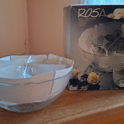 Vanha boolikulho, mukana myös kaikki 6 juomalasia. Kauha puuttuu.