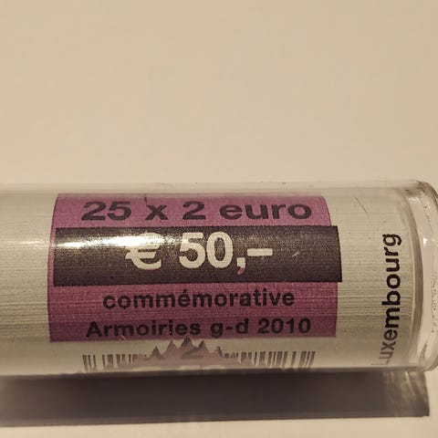 Luxemburg Grand-Duc Jean2 euron erikoiskolikko rulla vuodelta 2011, jossa 25 kappaletta 2 euron juhlarahoja.