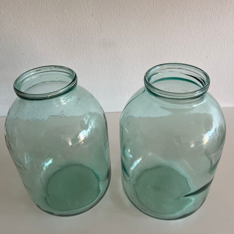 Hauska tilava lasipurkki paksu painava vihertävä lasi