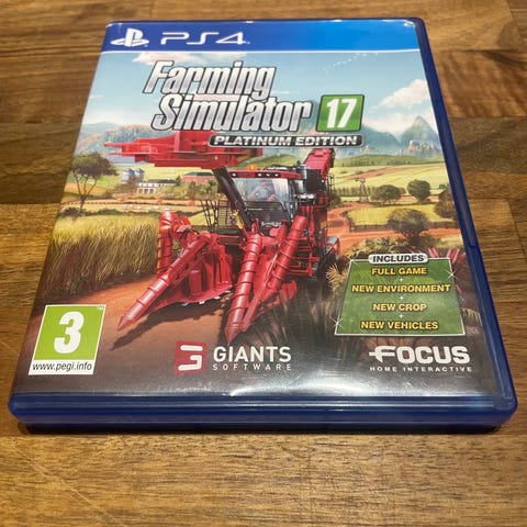 PlayStation 4 Farming Simulator 19 -peli. Maataloussimulaattori, jossa pelaaja hoitaa virtuaalista maatilaa, viljelee peltoja, kasvattaa eläimiä ja käyttää erilaisia maatalouskoneita.