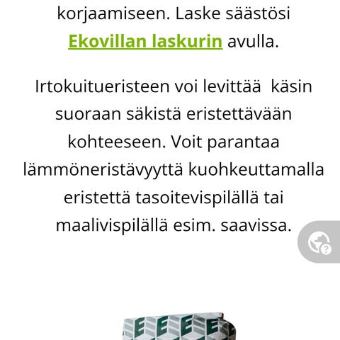 50mm verkko mattoa iv-putkien eristykseen