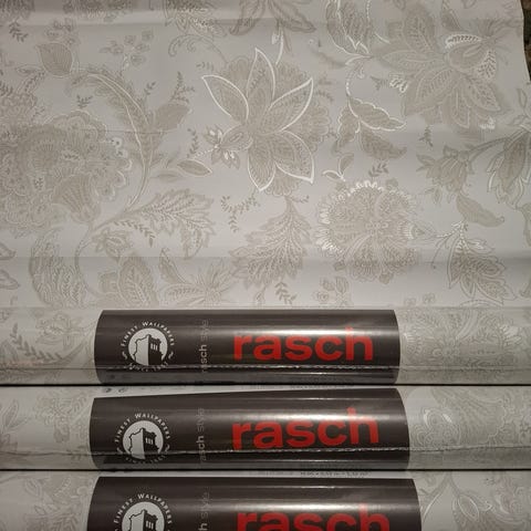Rasch tapetti lehtikuviolla. Rullakoko noin 10,05 x 0,53 m. Kuosissa on monivärinen, trooppishenkinen lehtikuvio sinisen, vihreän ja kullan sävyissä. Tapetti soveltuu sisätilojen seinäpintojen päällystämiseen kuivissa tiloissa valmistajan ohjeiden mukaisesti. Rullissa merkinnät pesunkestävyydestä, valonkestävyydestä ja kohdistuksesta, jotka helpottavat asennusta. Mallinumero 639216. Myydään yhdessä kaksi rullaa.