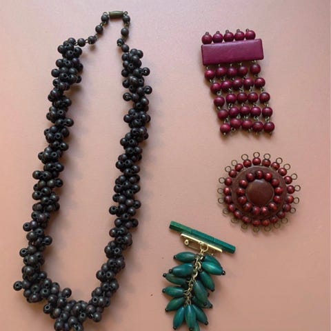 Torissa oli vastikään myynnissä tähän sarjaan sopiva rintakoru hintaan 65 eur, nyt jo myyty.
