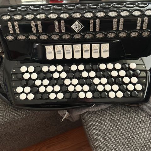 Vanha Consertina koristeeksi. Joitain nappeja puuttuu. Hienoa käsityötä.