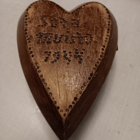 Sota-ajan puhdetyö, rasia vuodelta 1943. Toinen sarana rikki mutta muuten oikein hyvä kunto. Mitat 9.5*14*23 cm. Puinen. Pohjassa vuosiluku 1943.