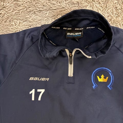 Kiekko-Espoon kevyttoppis, koko naisten S. Toisessa hihassa kyynärpään kohdilla pari paikkaa.