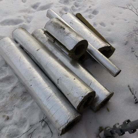 125mm insuplastia noin 35 metriä.Vaihdettu toiseen eristeeseen ja halkaistu irrottaessa.