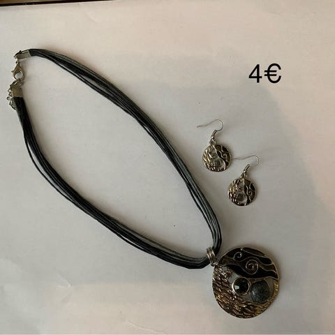 käyttämätön korusetti peilirasiassa korvakorut ja kaulariipus ketju 45cm ei leimoja 8e