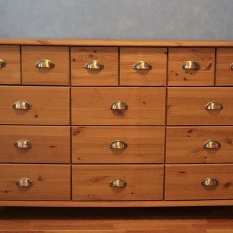 Nätti puinen painava lipasto/senkki. Pientä kulumaa. Ylimmän vetolaatikon saa avaimella lukkoon.