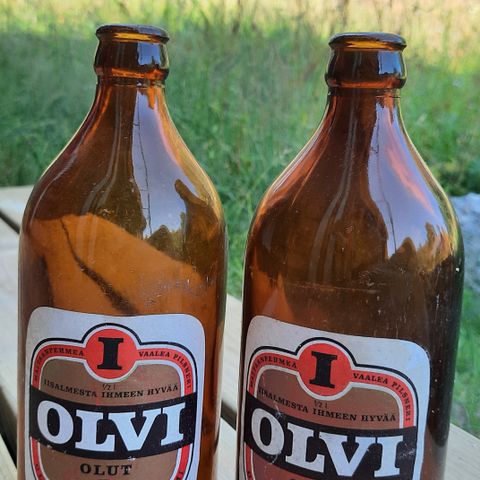 Olvin vanhat olutpullot, kunto hyvä. Neljä erilaista etikettiä & yksi tupla.