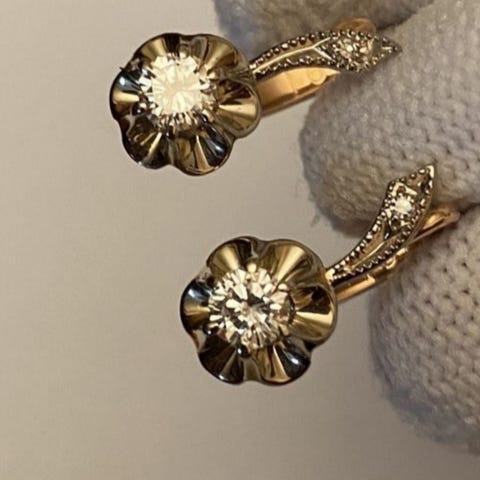 Vintage kultakorvakorut 750, luonnollinen turkoosi ja keltaiset timantit