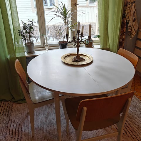 Ostetaan Laitalan pyöreä talonpoikaisrokokoo ruokapöytä.