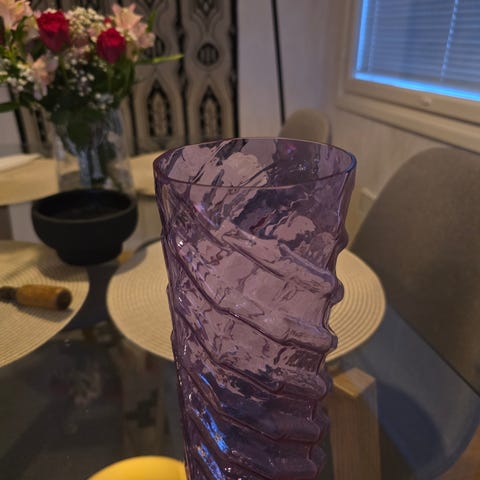 Hyväkuntoinen Nuutajärven maljakko, tarra paikallaan.