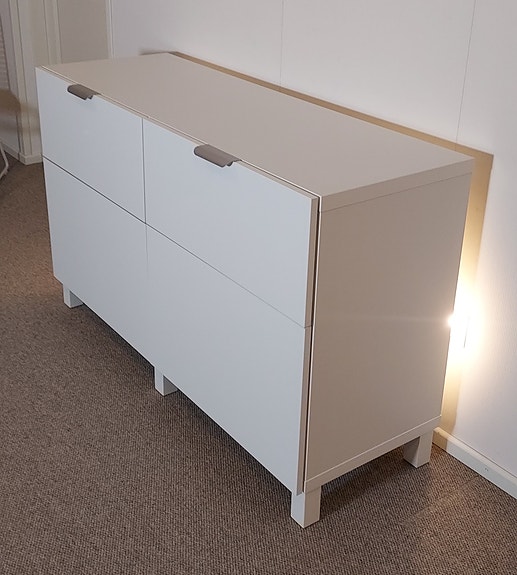 Jalkojen ansiosta kokonaisuus nousee irti lattiasta, mikä tekee kalusteesta ilmavamman ja helpottaa sen alta siivoamista.