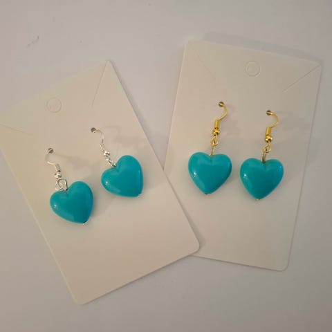 Käsintehdyt korvakorut. Sydän on akryylistä valmistettu helmi. Kevyet ✨️