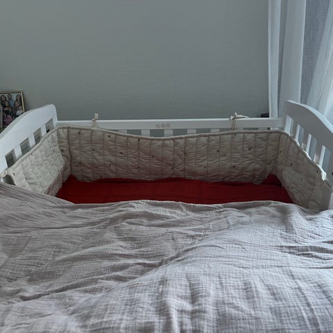 Paljon käytetty, mutta edelleen hyvässä kunnossa. Pyörät, jotka saa myös lukittua. Pehmeät reunat. Patja hieman "vääntynyt" pesun jälkeen mutta ei meillä haitannut unia. Voidaan purkaa osiin.