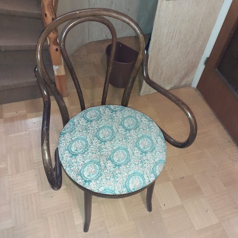 Kuvienmukainen tuoli. Selkänoja heiluu. Maali lohjennut vähän. Mennee vielä esim kukka-alustana. Nouto.