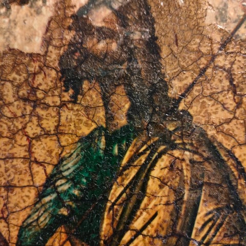 Ikoni on ostettu Romaniasta galleriasta ja se on käsin maalattu.