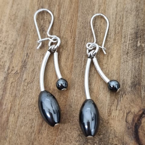 Hematiitti/hopea korvakorut