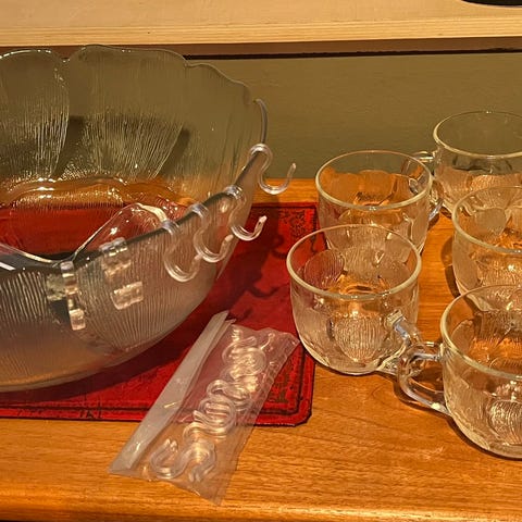 Lasinen boolisetti, johon kuuluu koristekuvioitu kirkas boolikulho sekä 12 kpl mukeja ja kauha. Kulhossa ja mukeissa on kohokuvioitu hedelmäaiheinen koriste. Setti soveltuu esimerkiksi mehun, boolin tai muiden juomien tarjoiluun juhla- ja arkitilaisuuksissa.