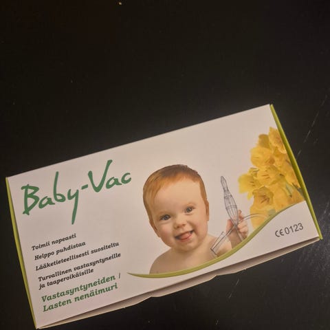 Baby-Vac nenäimuri. Käytetty yhdellä lapsella ja puhdistettu asianmukaisesti aina käytön jälkeen. Jonkun verran pintanaarmua löytyy. Nyt ollut pitkään käyttämättä. Kaikki osat tallessa ja ehjät. mmm.