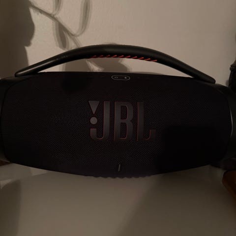 JBL kannettava kaiutin musta. Suurikokoinen kaiutin, jossa on etupuolella metallinen kaiutinsäleikkö ja sivuilla pyörät sekä ulosvedettävä vetokahva helpottamaan siirtämistä. Yläosassa ohjauspaneeli liitäntöineen. Soveltuu esimerkiksi musiikin toistoon kotona tai pienissä tilaisuuksissa.