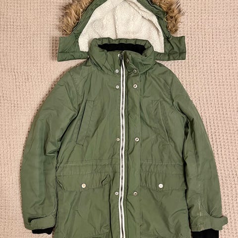 Everestin lämmin musta talviparkatakki , koko 158, tuulen-ja vedenpitävä kangas. Takin hupun karva on mystisesti kadonnut. Tästä lämmin takki talveen 🙂 takkia on käytetty mutta edelleen ihan siisti ja toimiva seuraavalle.