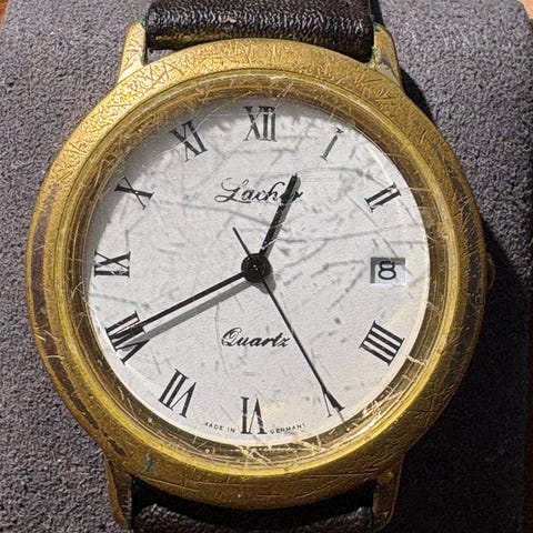 Myydään analoginen Neckarsulm-rannekello. Klassinen kullanvärinen runko ja vaalea kellotaulu. Selkeä ja helppolukuinen design, sopii arkikäyttöön tai kevyeksi siistimmäksi kelloksi.