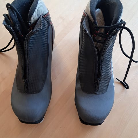 NNN-side. Alpina TR12 hiihtomonot, koko 38. Väri musta-valkoinen punaisilla yksityiskohdilla. Päällinen synteettistä materiaalia, vuori tekstiiliä ja pohja kumia. Monot soveltuvat perinteiseen maastohiihtoon. Nauhoitus on suojattu vetoketjullisella päällisellä, joka auttaa pitämään lumen ja kosteuden poissa. Karkeakuvioinen ulkopohja helpottaa kävelyä suksilta pois.