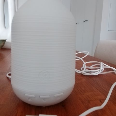 Aimason-merkkinen diffuuseri, valo ja ilmankostutin. Sopii eteerisille öljyille. Erivärisiä valoja, ja diffuuseria voi käyttää ilman valoa. Kaukosäädin. Muutamia kertoja käytetty.