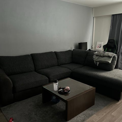 Furninova divaani sohva tummanharmaa kangas. Sohva koostuu kahdesta moduulista. Divaani on 160 cm pitkä. Istuinkorkeus noin 42 cm. Erittäin siisti, ei lemmikkikoti.