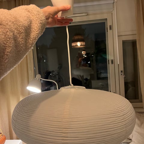 Åhlensin myymä klassinen riisipaperista ja teräslangasta valmistettu varjostin, joka antaa miellyttävän hehkun.