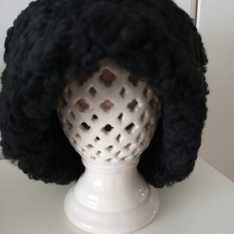 Kevyt naisten päähine, koko 56-58, musta väri, tekoturkis.