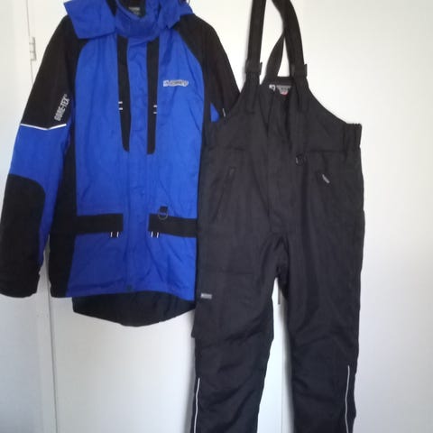 Kelkka puku, koko M, Lomatex tekemä , kotimainen, ikäsekseen hyvä kuntoinen, toppaukset polvissa ja takapuolella. karvakauluksella varustettu huppu.
