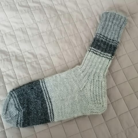 Käsinkudotut villasukat 7-veljestä langasta. Terän pituus 25-26cm, varsi n.17cm.