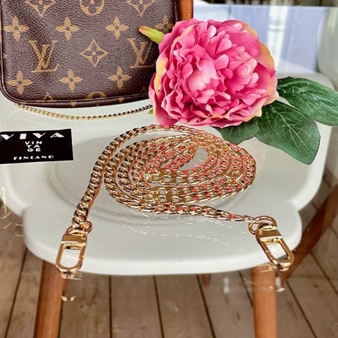 Kullanvärinen metalliketju laukkuun