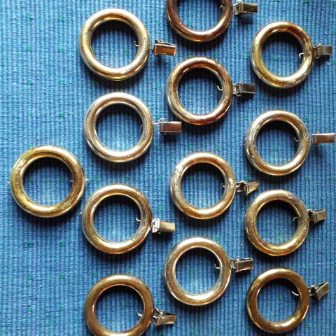 Suihkuverhorenkaita, avaamaton paketti, sis 12 rengasta. Muovia. 5 pakettia myynnissä, 1 €/kpl.