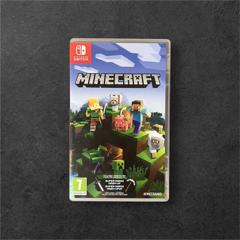 Nintendo Switch Minecraft -peli fyysisenä versiona. Pakkaus sisältää pelikasetin Nintendo Switch -konsolille. Ikäraja PEGI 7. Pelissä rakennetaan, tutkitaan ja selviydytään avoimessa kuutiomaailmassa yksin tai moninpelinä konsolin ominaisuuksien mukaan.