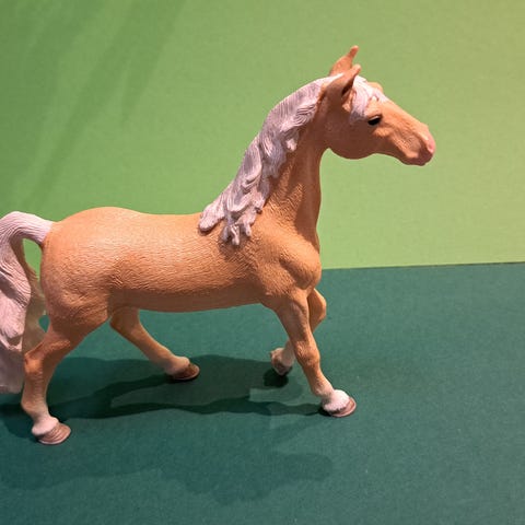Hieno scleich hevonen varusteineen, sekä hoitaja.