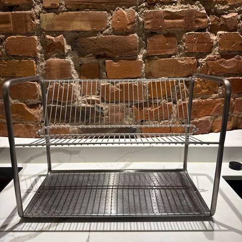Hylly joka mahtuu keittiön työtasolle kaapiston alle.