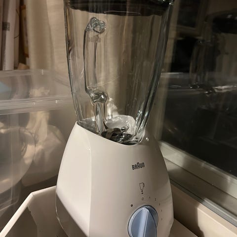 Uutta vastaava ja hyvin vähän käytetty blenderi. Maksanut noin 100€. Blenderi oli ollut hetken ulkona, joten kuvissa huurteessa. 5 nopeusasetusta ja 900W.