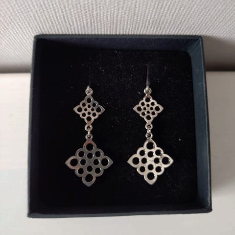 Liisa Vitalin hopeiset Pitsi-korvakout tappikiinnityksellä. Korun koko noin 15 mm. Leima: leijona 925.
