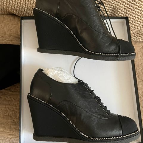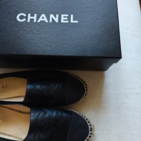 Myydään muutaman kerran käyttöön päässeet Chanel mustat nahkaiset espadrillot. Nahassa ei käytön jälkeä. Laatikko ja kuitti mukaan.