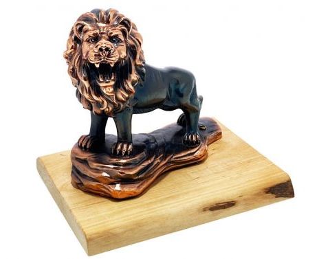 Amerikkalainen Jennings Brothersin valmistama Leijona kirjatuki pronssista. Sopii sisustusesineeksi hyllylle, lipaston päälle tai kirjahyllyyn. Leijonan häntä katkennut. Pituus 18cm.
