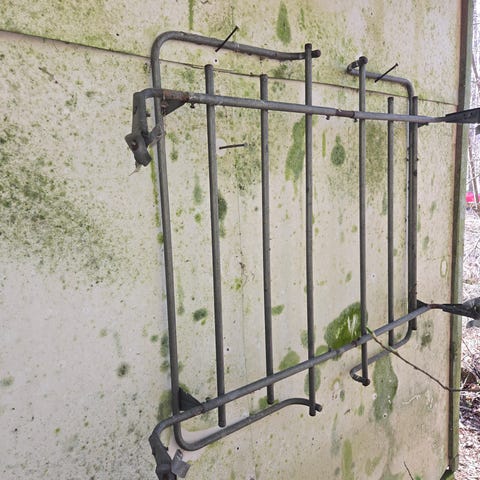 Suht hyväkuntoinen vanha kattoteline autoon. Ollut Suzuki samuraissa, mutta sopii varmasti moneen muuhunkin. Säädettävä kiinnitysleveys.